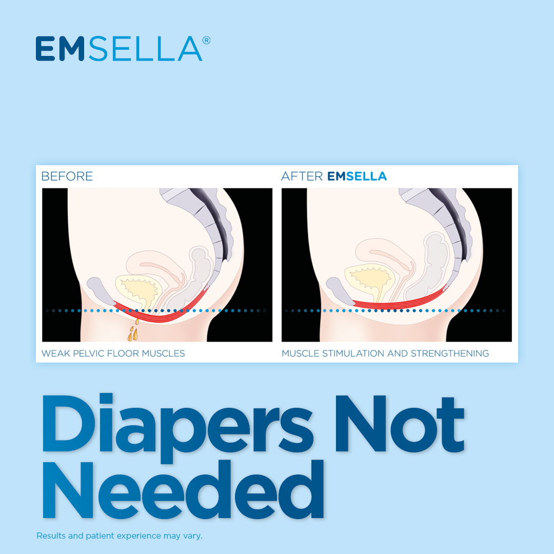 Your results may vary. If you experience uncomfortable pain at the site of application during treatment, immediately discontinue the treatment and speak with your treatment provider. Treatment should not be applied if you have electronic or metal implants. As with any medical procedure, ask your doctor if the EMSELLA® procedure is right for you. BTL EMSELLA® is intended to provide entirely non-invasive electromagnetic stimulation of pelvic floor musculature for the purpose of rehabilitation of weak pelvic muscles and restoration of neuromuscular control for the treatment of male and female urinary incontinence. © 2023 BTL Industries, Inc. and affiliated companies. All rights reserved. BTL®, EM®, and EMSELLA® are registered trademarks in the United States of America, the European Union, and/or other countries. Products, the methods of manufacture or the use may be subject to one or more U.S. or foreign patents or pending applications, see www.btlnet.com/patents. Trademarks EMBODY, EMFACE, EMFEMME 360, EMSCULPT, EMSCULPT NEO, EMSELLA, and EMTONE are associated with the EM® family of products and services.